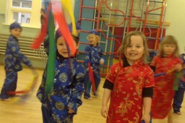 Early Years celebrating Chinese New Year with a special dragon themed dance.